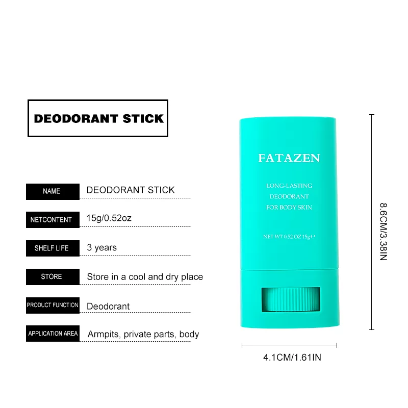 Long-lasting and charming fragrance: The core charm of FATAZAEN deodorant stick is its long-lasting and charming fragrance. It uses high-quality fragrances and is carefully formulated to stay on skin and clothing for a long time. Whether it is an elegant fragrance or a rich fragrance, it can make you stand out from the crowd and add confidence and charm.