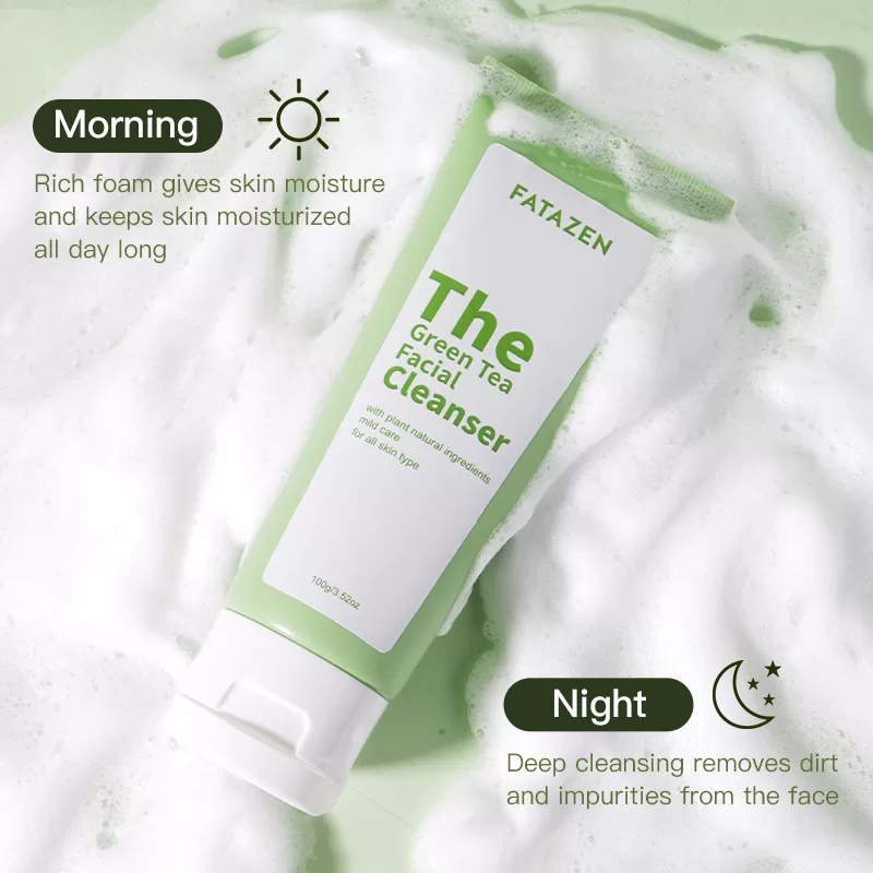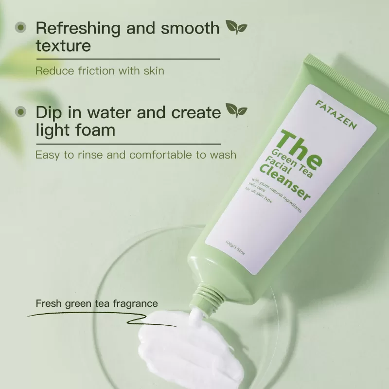 Deep cleansing and oil removal: Green tea facial cleanser is rich in tea polyphenols, which can deeply cleanse pores, remove dirt and oil, prevent pores from being clogged, and keep skin fresh. For people with oily skin, green tea facial cleanser has a particularly significant oil control effect and can effectively relieve skin stress.
