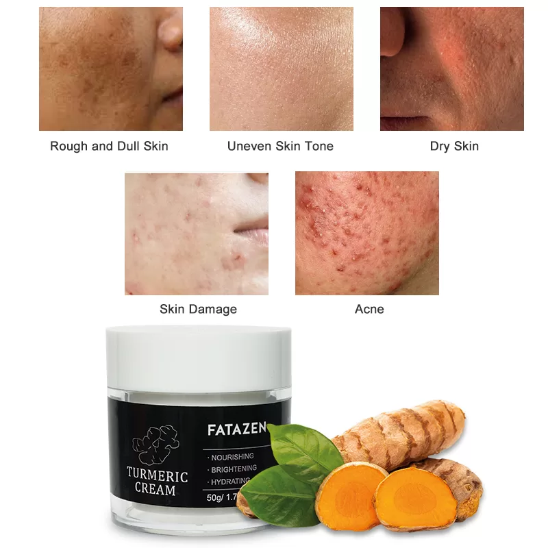 FATAZEN Organic Natural Acne Treatment Tumeric Facial Cream Vitamin Skin Whitening Anti Aging Retinol Turmeric Face Cream